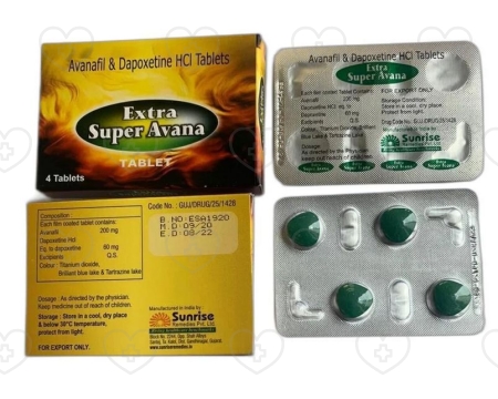 エクストラスーパーアバナの錠剤は、アバナフィル200mgとダポキセチン60mgを含んでいます。ほとんどの患者にとって、初回用量は性行為の約30分前に1錠です。この薬の勃起および射精コントロールへの効果は最大6時間持続することがあります。