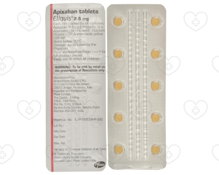 エリキュースは2.5mgおよび5mgの錠剤で提供され、用量は患者の臨床状態、腎機能、体重に応じて調整されます。心房細動による脳卒中の予防には、通常、1日2回5mgを経口投与します。DVTおよびPEの治療には、最初の7日間は1日2回10mgを経口投与し、その後は5mgを1日2回投与します。