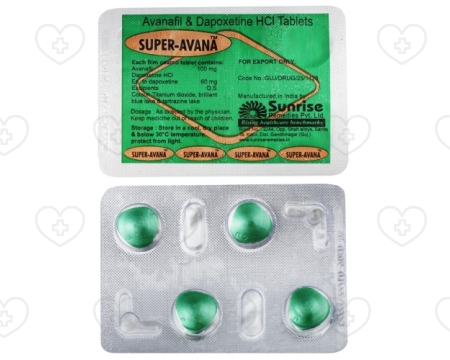 スーパーアバナは、2つの強力な薬剤の組み合わせです。アバナフィルは、性的刺激中にペニスへの血流を増加させることにより、勃起機能を向上させるリン酸ジエステラーゼタイプ5(PDE5)酵素を阻害します。このメカニズムにより、作用の発現が早く、副作用のリスクが低減します。一方、ダポキセチンは、射精までの時間を延長する選択的セロトニン再取り込み阻害剤(SSRI)であり、神経系でのセロトニン活動を増加させることにより、射精を遅らせることができます。