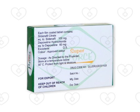 スーパーPフォース錠は、シルデナフィルシトラート100mgとダポキセチン60mgを含みます。推奨される用量は、性的活動の約1〜2時間前に一錠です。成分の強力な組み合わせのため、24時間以内に推奨される用量を超えないでください。